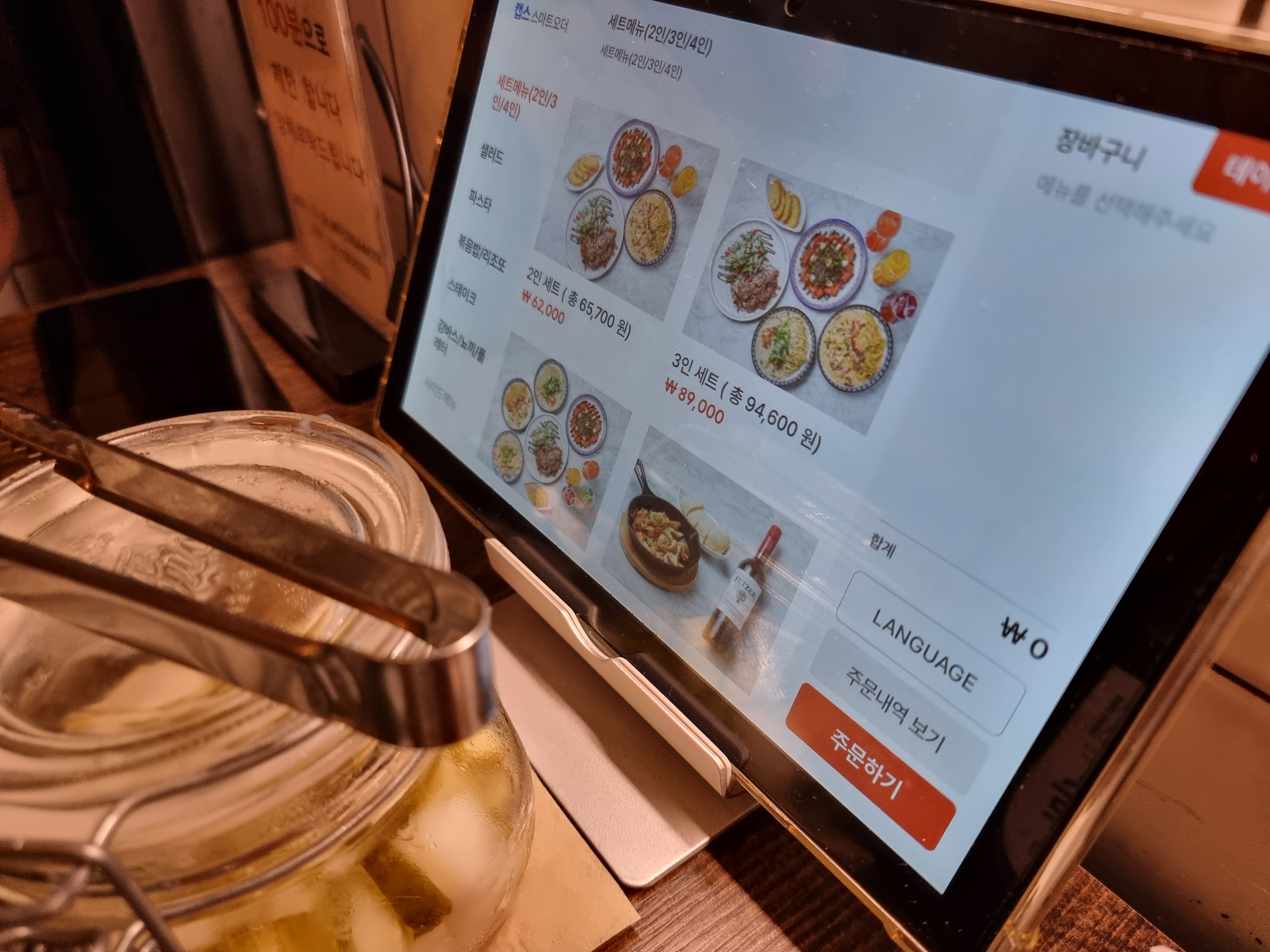 테이블에서 편하게 주문하면 된다. 메뉴가 다양해서 한참을 스크롤 한다.