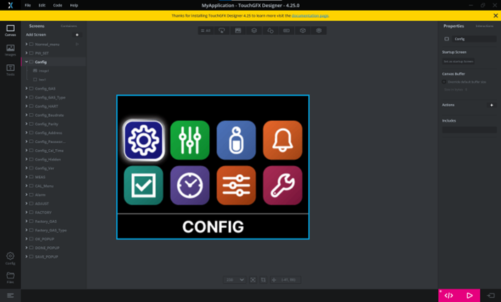 - Tool: STM32CubeIDE 1.18.1, TouchGFX Designer 4.25.0
