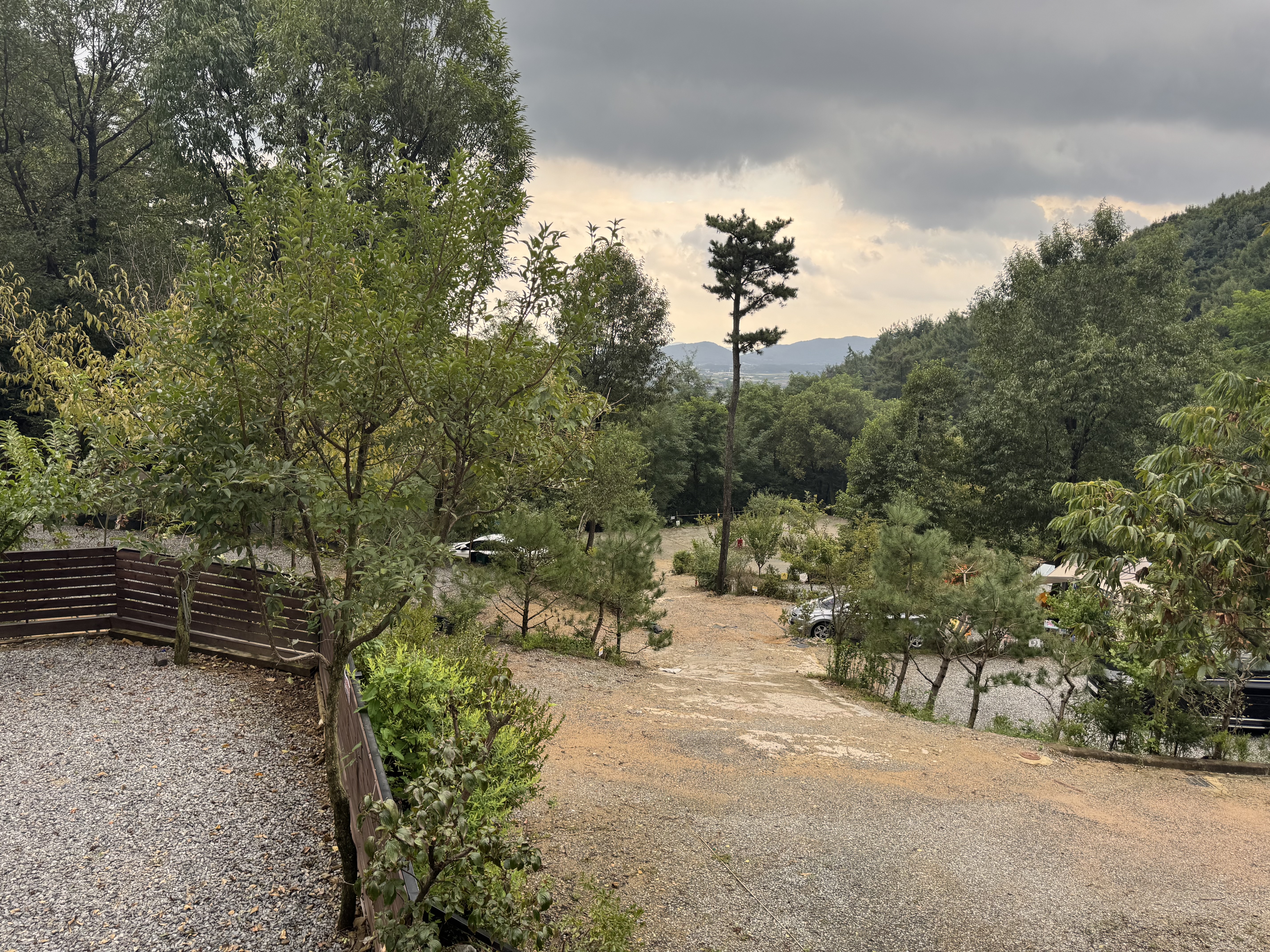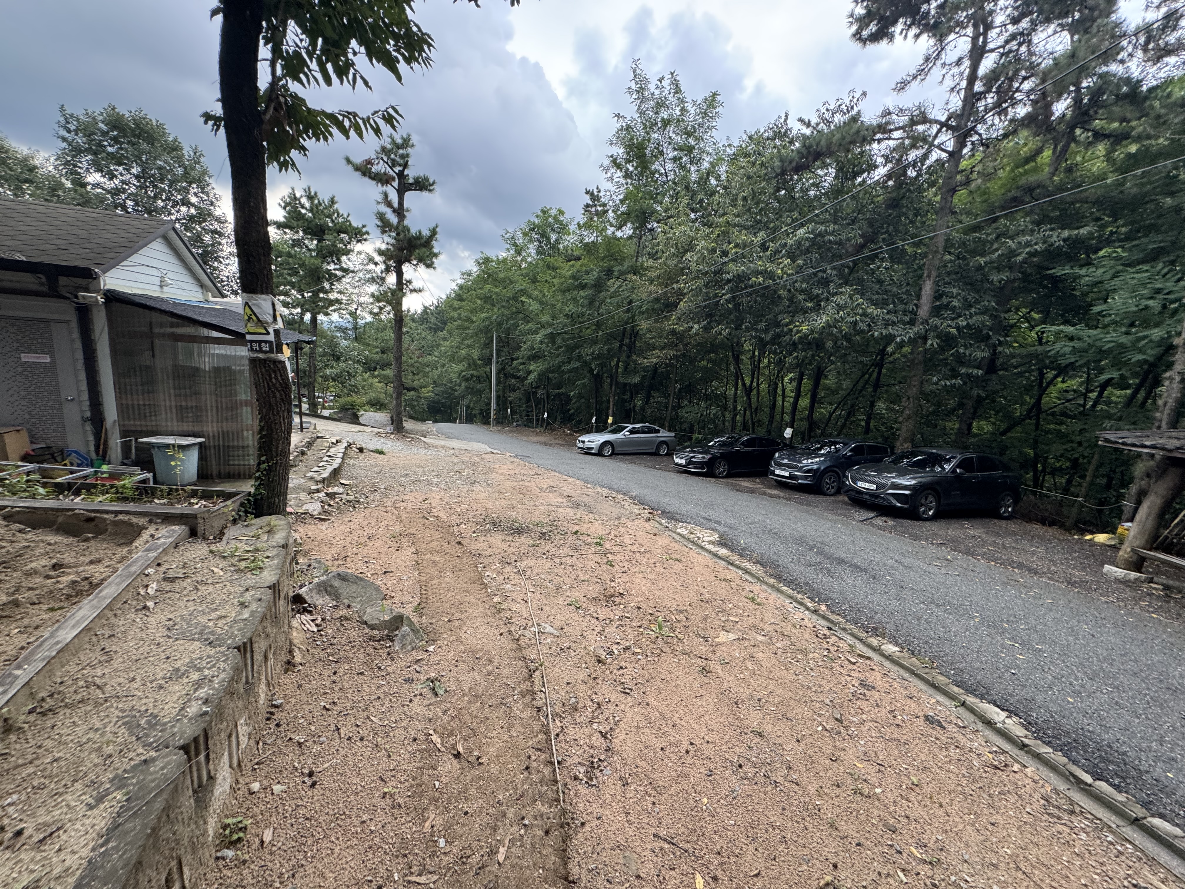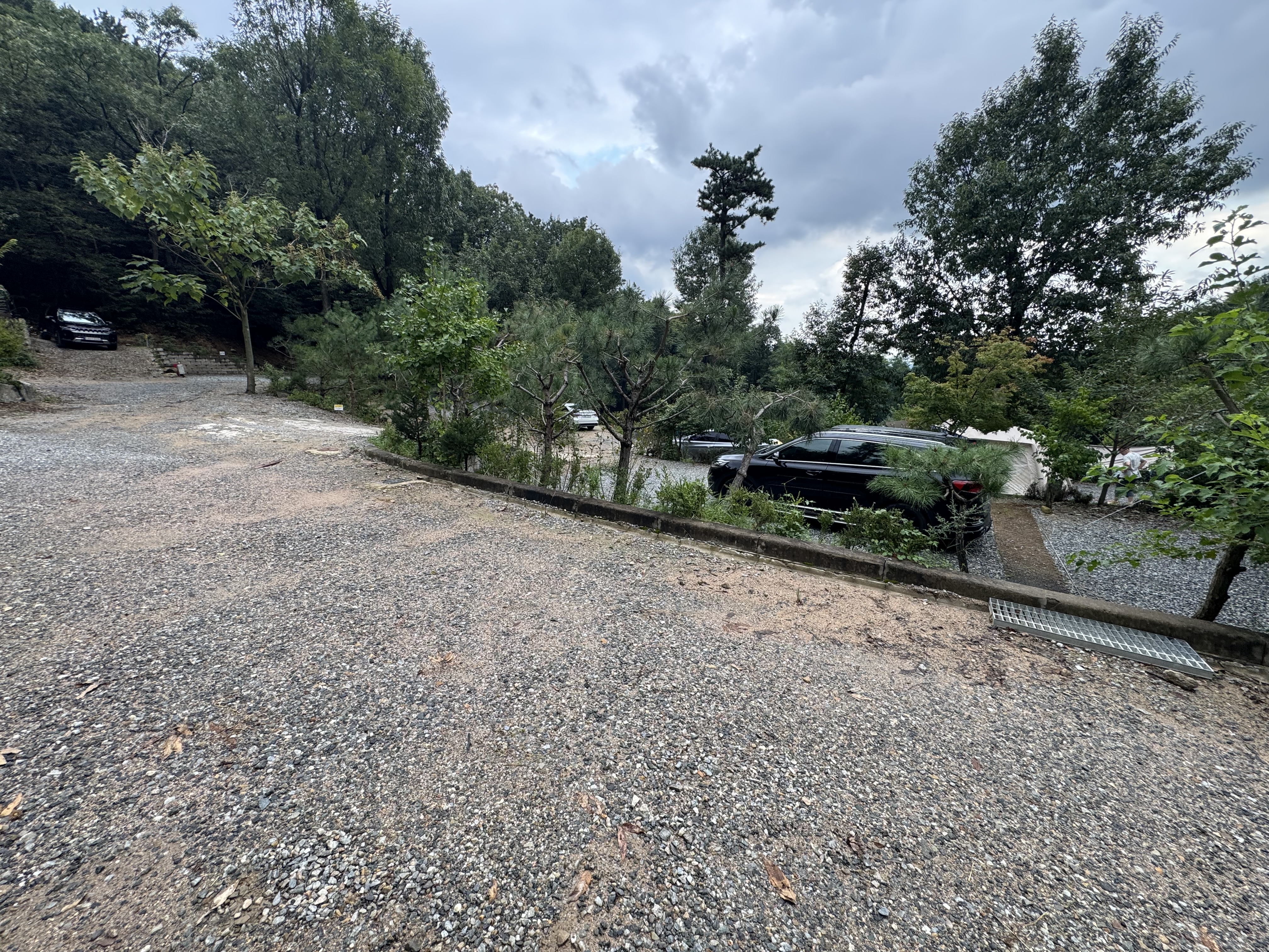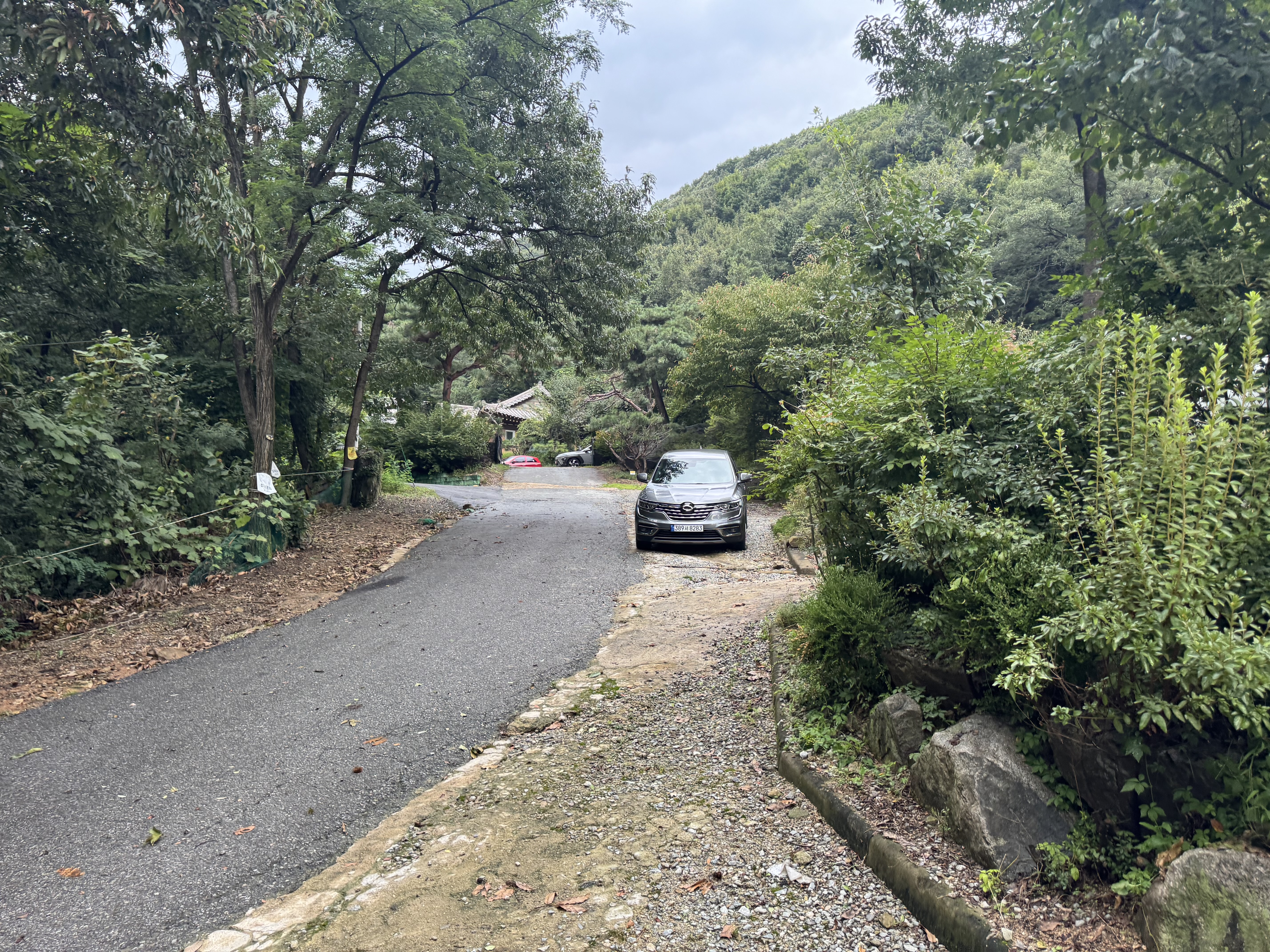 캠핑장 입구 초입이다. 사이트옆 주차가 안되는 사이는 짐을 옮기고 저렇게 길가 주차를 한다.