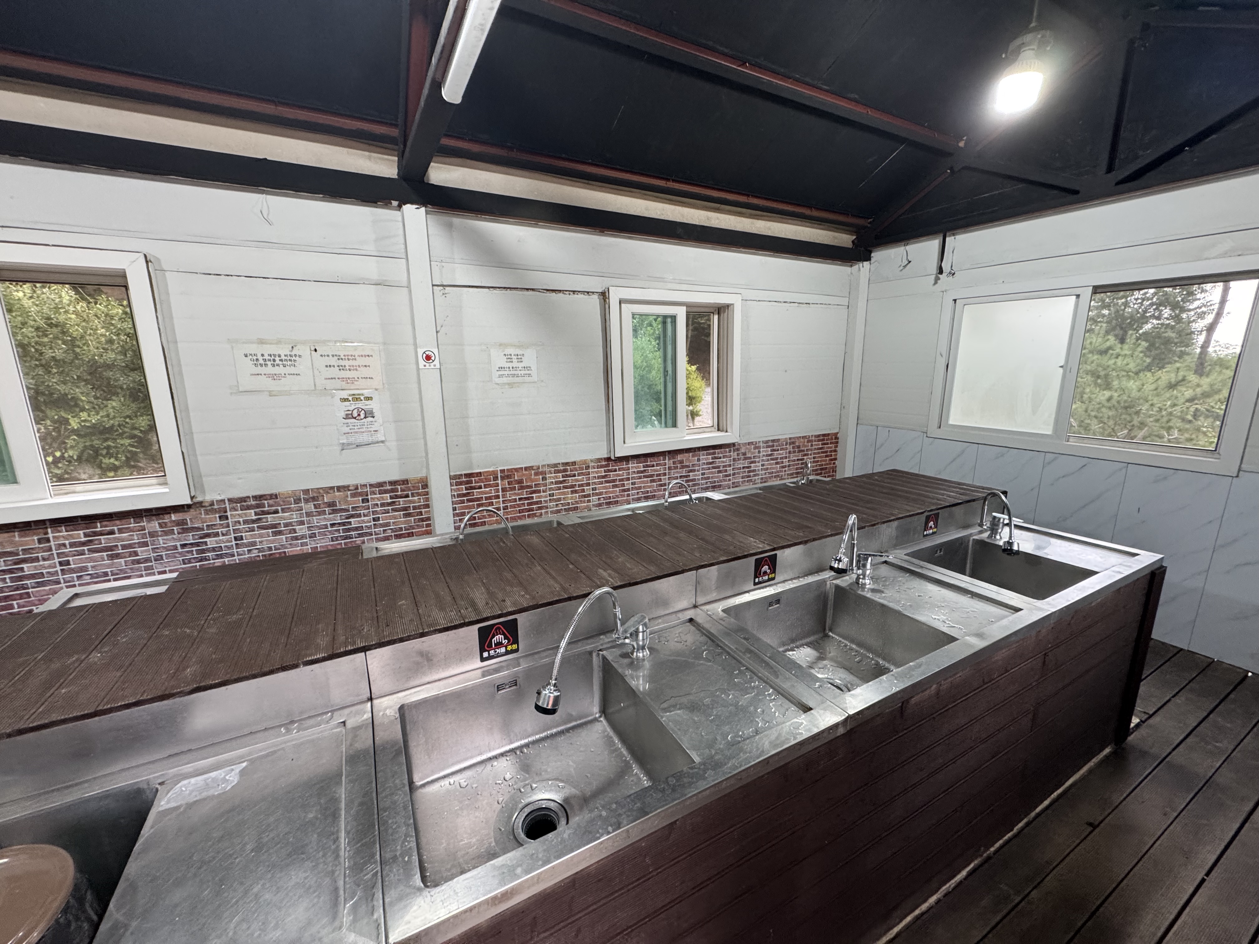 세면대가 별도로 없는 캠핑장이 많아 개수대나 화장실에 간단하게 하는 경우가 많은데 여긴 양치도 하고 세수도 하고 아주 좋다.