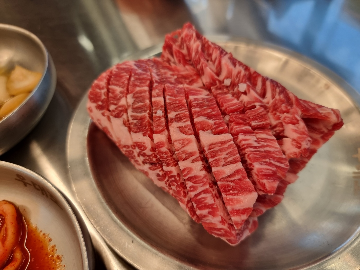 생갈비 풍비가 아주 기가막힌다. 소금 찍어 먹으니 생갈비 본연의 고소한 맛이 그대로 느껴진다.