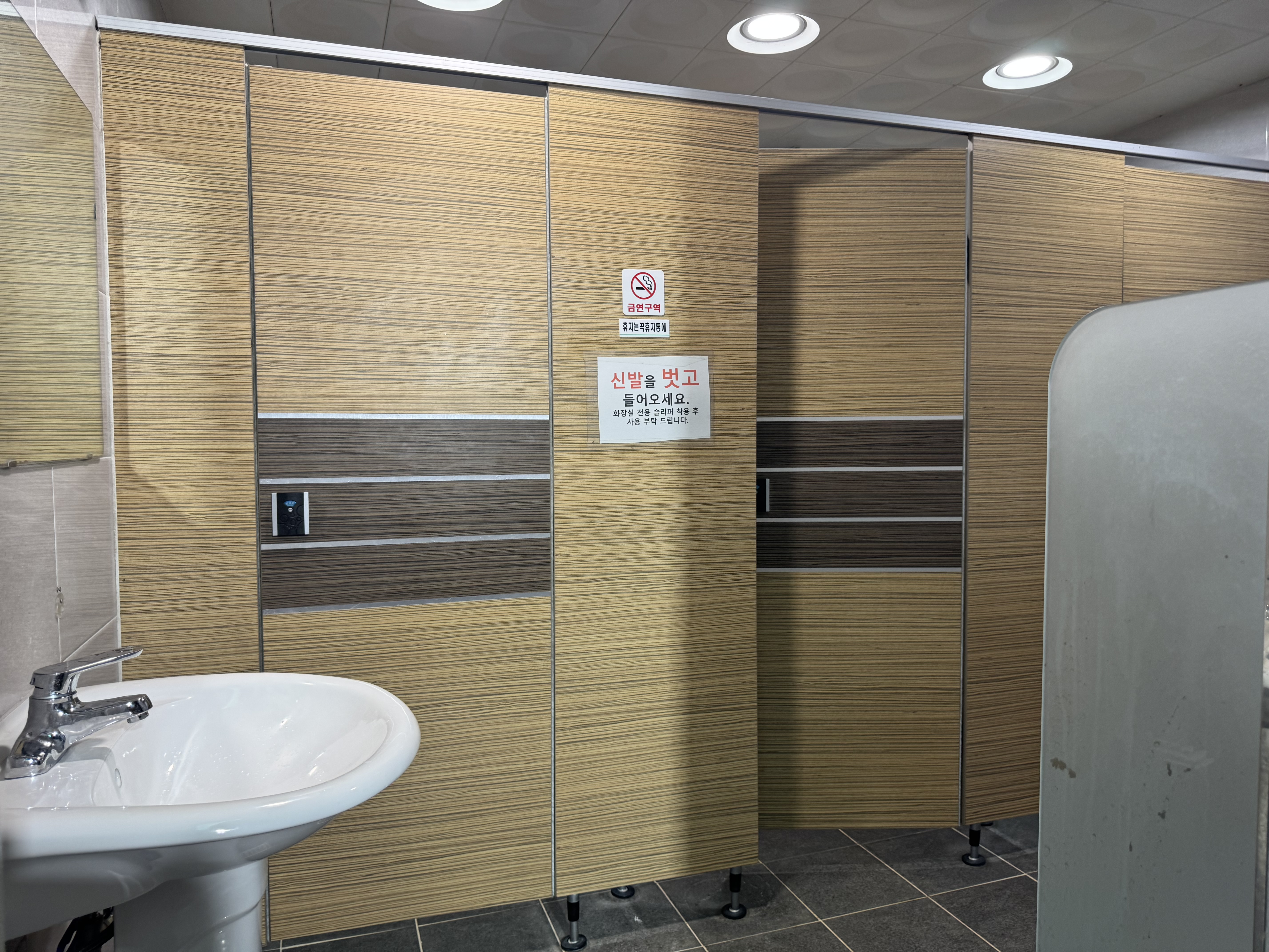 화장실도 전용 실내화를 신고 들어가야 되므로 청결하게 관리가 잘 되어 있다.