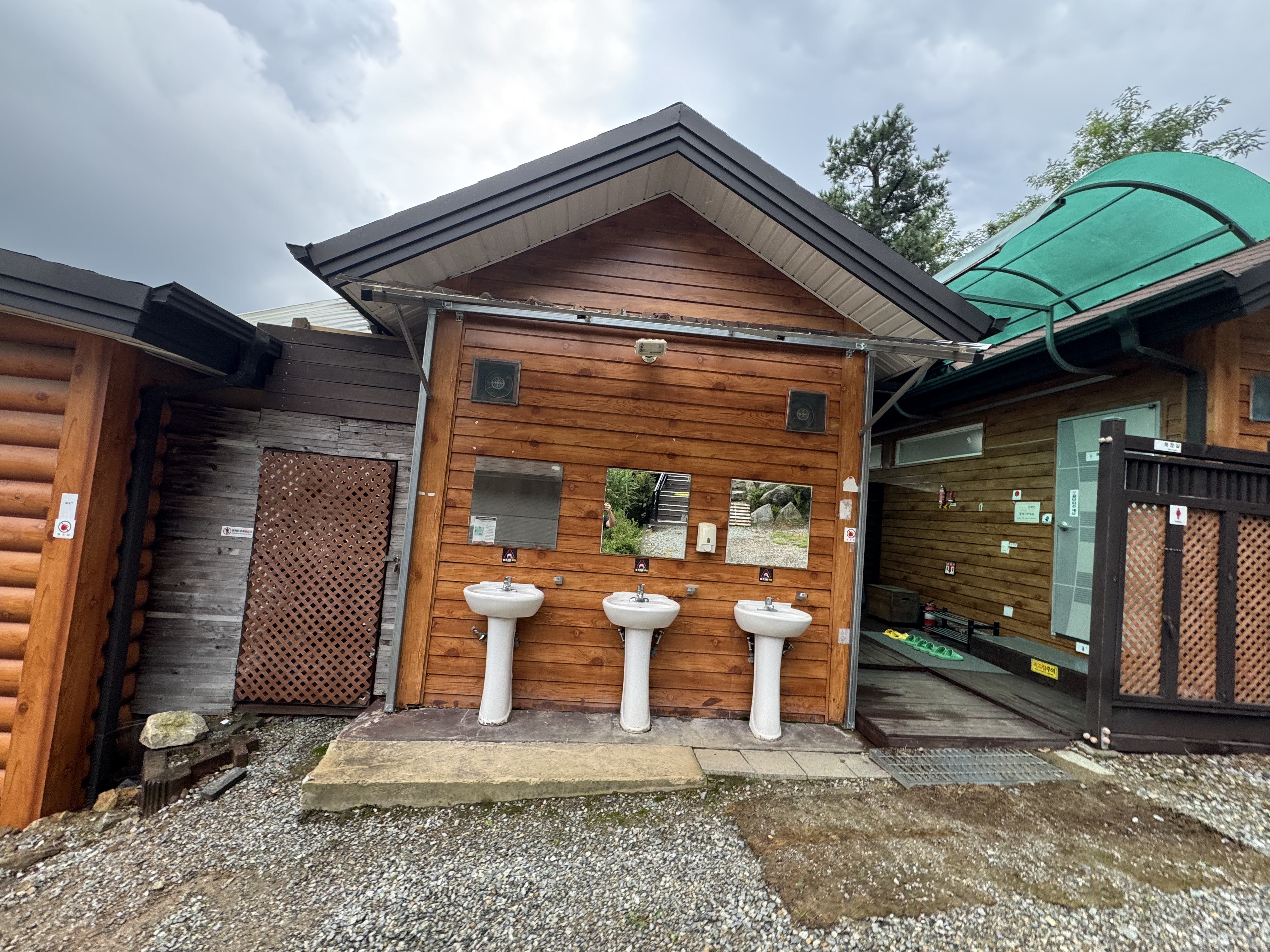 세면대가 별도로 없는 캠핑장이 많아 개수대나 화장실에 간단하게 하는 경우가 많은데 여긴 양치도 하고 세수도 하고 아주 좋다.